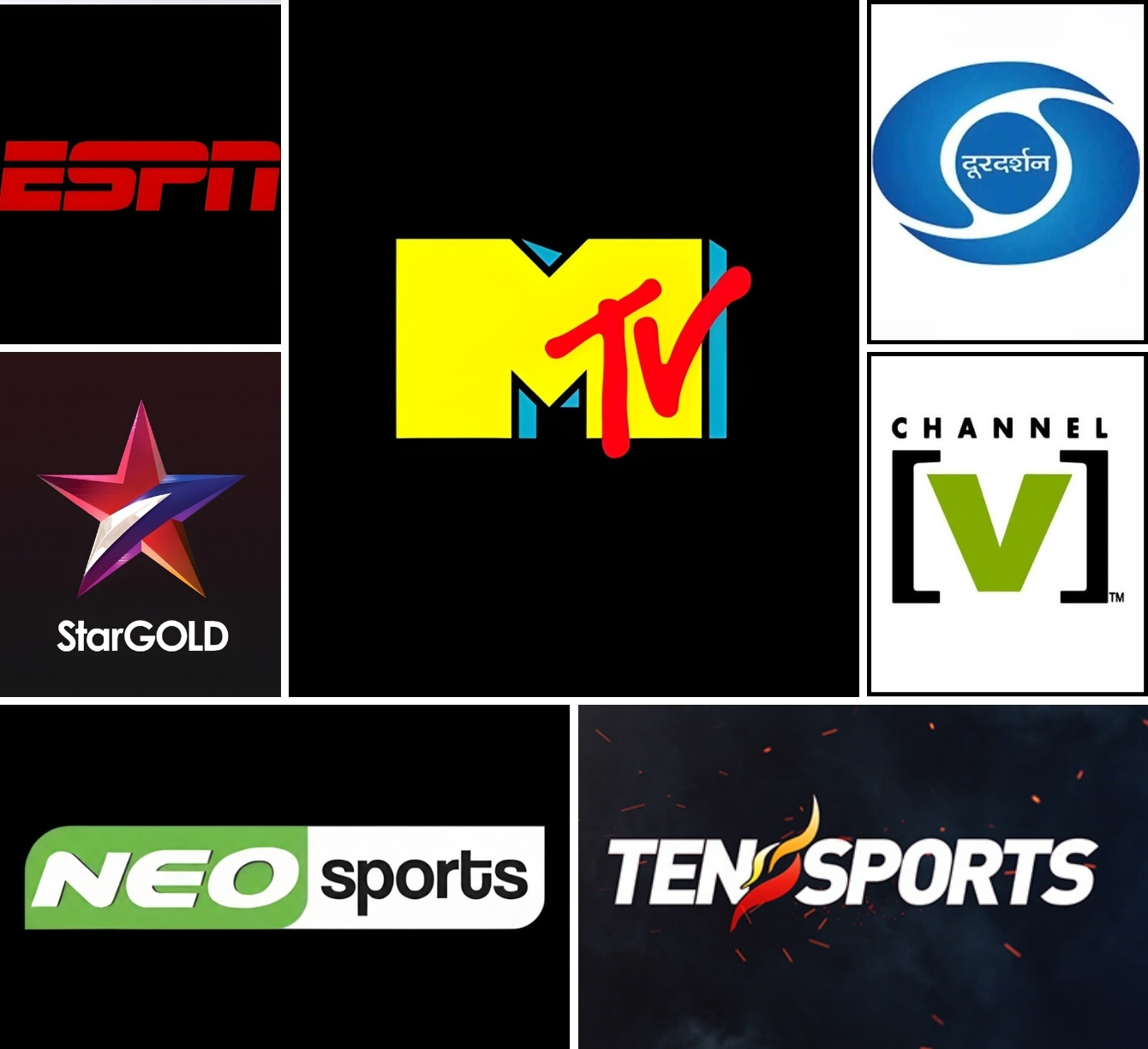 Ten Sports • MTV • ESPN •Channel [v] • Neo Sports • Doordarshan • Star Gold